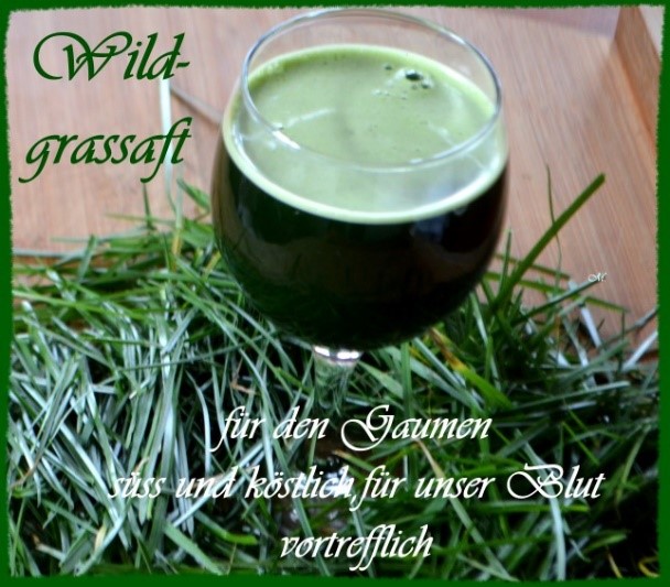 Doch ein Grassaftpresse oder anderer entsprechender Entsafter tun es auch. Dieser Saft schmeckt einfach pur.